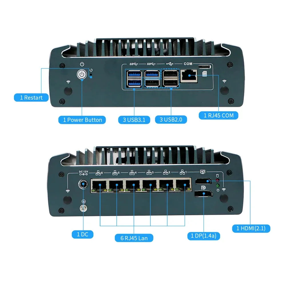 - Rear I/O: 1 DC , 6 RJ45 Lan , 1 DP(1.4a) , 1 HD(2.1)